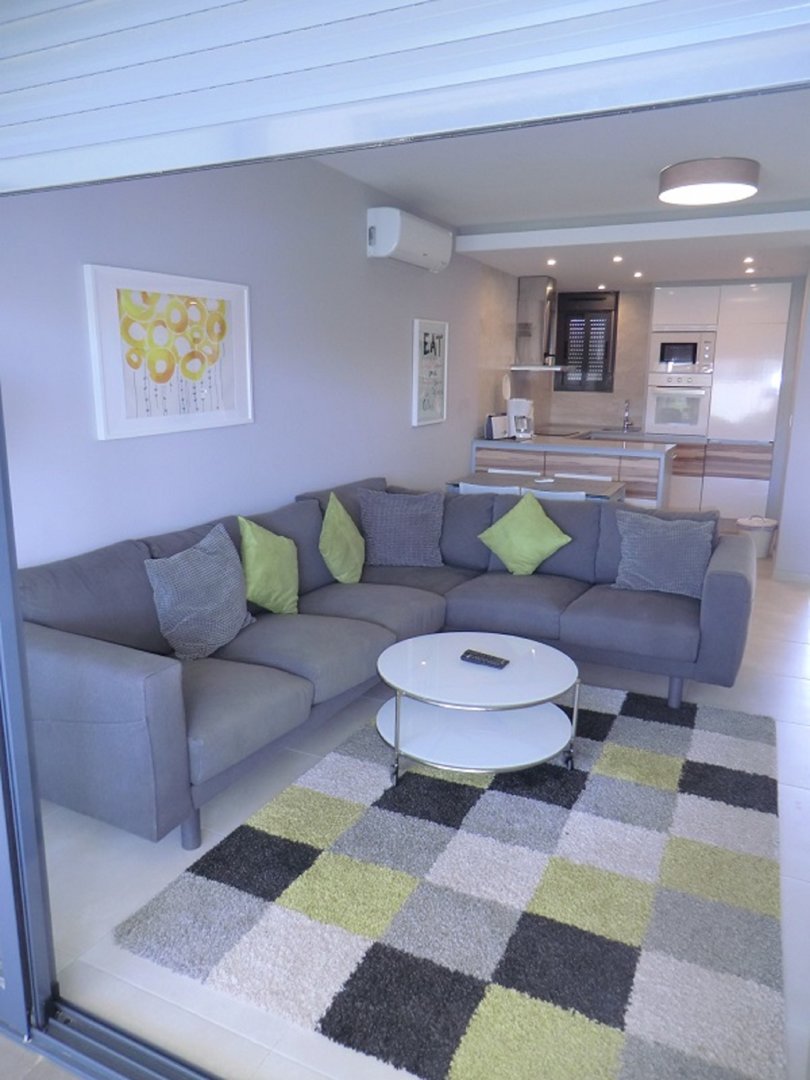 Very modern house, fully equipped, two bedrooms, is located in a new Oasis Beach VIII urbanization in Los Altos area. Each bedroom and living room has air conditioning. It has a terrace and a private solarium with views of the sea, the pool and the garden, WIFI. First floor.