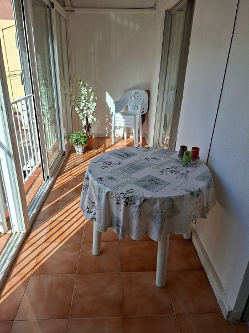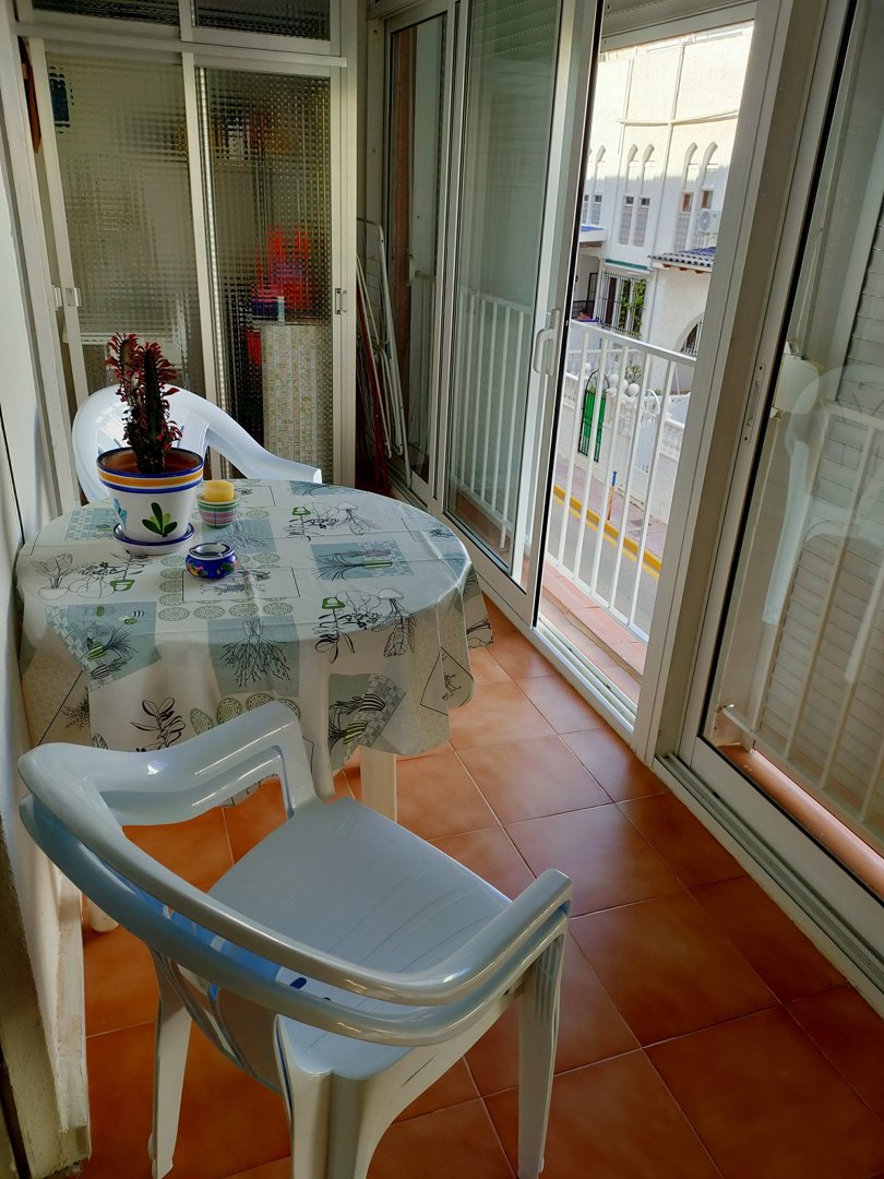Apartment with two bedrooms, fully equipped kitchen, bathroom with bathtub, balcony, air conditioning, garage, Wifi. Sheets service, towels included. Very good location, 80 m from the Playa del Cura - Torrevieja. Typical apartment to enjoy the first